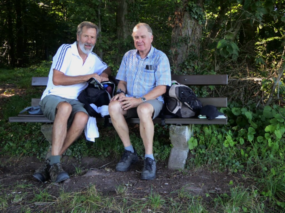 Wieder zurück zur Verzweigung, folgen wir noch 300 m dem blauen Punkt, biegen dann links ab und nehmen die Markierung „GFW“ und roter Strich auf. Dies ist der Georg- Fahrbach- Weg, seine Zeichen werden uns bis kurz vor dem Ziel begleiten. Wenig später treffen wir auf eine Straße, gehen auf ihr 20 m nach links und schwenken dann schwach rechts in einen unscheinbaren Pfad (Achtung: leicht zu übersehen!). Beim Waldrand geht es etwas rechts versetzt weiter durch ein Feld, dann wieder zur Straße, die wir rechts versetzt queren, dann nochmals über eine Straße und auf aussichtsreichem Höhenweg durch die Höhensiedlung Königsbronnhof. Bald queren wir eine weiter Straße und wandern auf schönem Waldpfad zum Naturschutzgebiet Sommerrain.