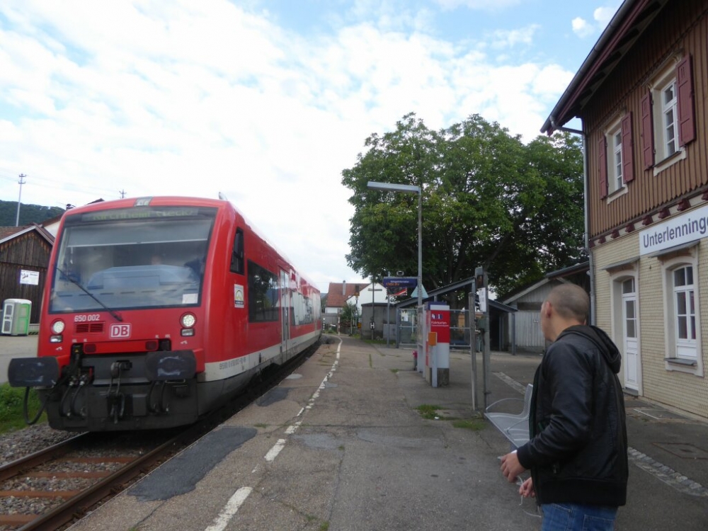 Hier biegen wir links ab und folgen bis zum Ziel dem quer liegenden roten „Y“ („Unterlenningen 2 km“): auf steinigem Pfad anfangs steil bergab, dann auf breiterem Weg zum Waldrand und durch Streuobstwiesen nach Unterlenningen. Wir laufen geradeaus in den Ort, nach der Brücke rechts und bei der Bushaltestelle links auf der Bahnhofstraße zum Bahnhof.