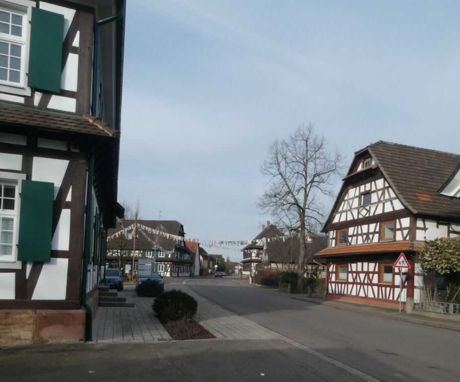 Wir laufen auf der Hauptstraße durch den Ort, vorbei an der Bushaltestelle (Kürzungsmöglichkeit) und der Kirche und parallel zur Straße zur Tafel „Der Schimmel bei der Breitenwörtbrücke“, halten uns links und wandern an der Feuchtwiese „Steinwörth“, einem flächenhaften, für seine Orchideen bekannten Naturdenkmal vorbei (es liegt gegenüber von einem Fischteich) und biegen nach 100 m rechts ab. Wenig später überqueren wir den Gieselbach und gelangen auf gepflastertem Weg zurück nach Diersheim. Bei den ersten Häusern wählen wir links den Forellenweg und gelangen auf der Hanauer Straße zurück zum Ausgangspunkt.
