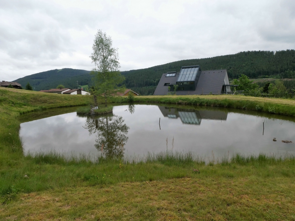 Nun wandern wir immer den Wegweisern Richtung Hinterzarten nach über die Winterhalde, biegen 700m nach dem Wegweiser „Mehlberg“ rechts ab (Zeichen des Jakobswegs, die gelbe Raute fehlt hier), bei der nächsten Kreuzung links ab und gelangen zum Auslaufbereich der Adlerschanzen. Wir halten und rechts und folgen der gelben Raute am Adlerweiher vorbei zum Bahnübergang. Bevor wir nach links auf der Bahnhofstraße zum Bahnhof Hinterzarten laufen, sollten wir uns einen kurzen Abstecher geradeaus zum Naturschutzgebiet Hinterzartener Hochmoor gönnen.
